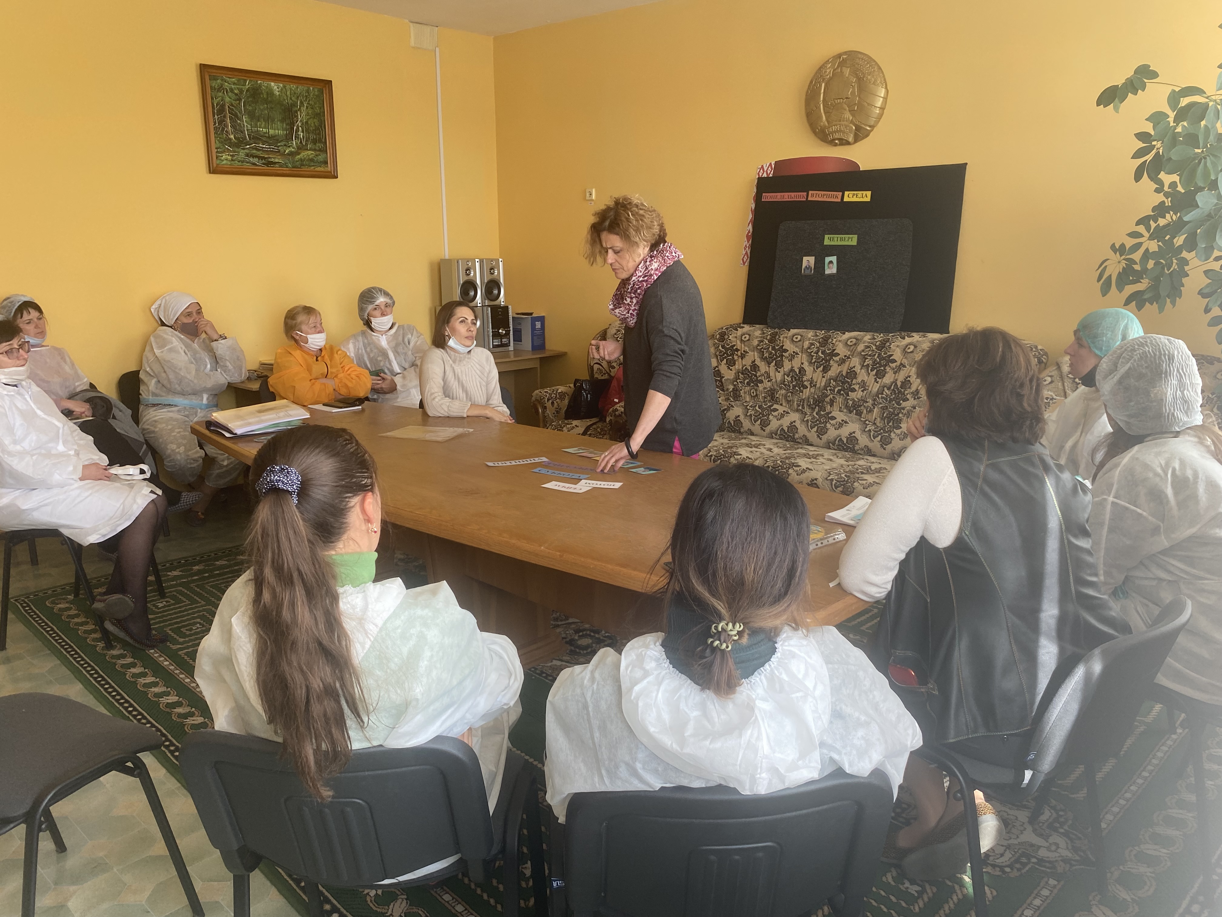 Педагоги-стажеры по альтернативной и дополнительной коммуникацией работают под чутким руководством экспертов. В этот раз мы собрались, чтобы обсудить промежуточные успехи детей в освоении новых способов и средств АДК. А стажеры поделились тем, чему научились. С историями развития детей смогли ознакомиться также другие сотрудники интерната, которые не участвуют в проекте напрямую.
