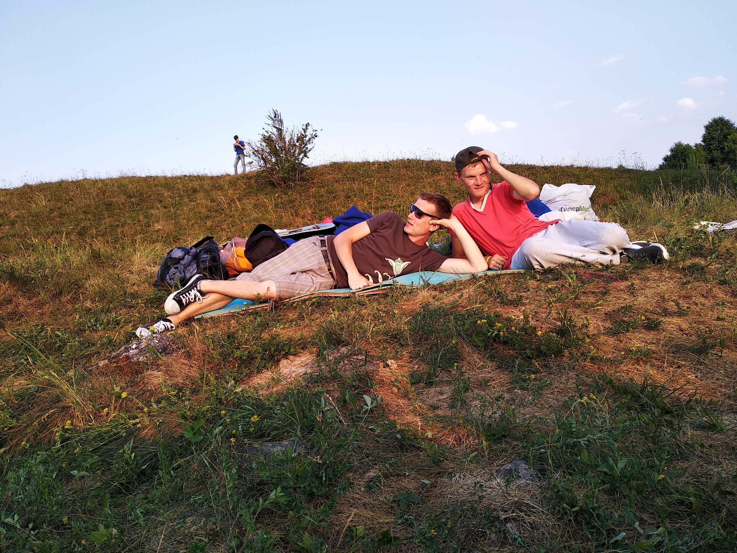 А еще мы ходили в настоящий поход с ночевкой, обернувшийся для всех настоящим приключением! Мы расставили палатки, разожгли костер, приготовили вкуснейший ужин, пели песни и играли в "крокодила". И вот, когда все разбрелись по палаткам, довольные и приятно уставшие, на наш лагерь налетела настоящая буря с громом, молниями, шквалистым ветром и проливным дождем! Вскоре стало понятно, что прокатные палатки не в состоянии сдержать напор стихии, и началась срочная эвакуация. Все конечно промокли немного, но до сих пор с восторгом путешественников вспоминают наш поход.