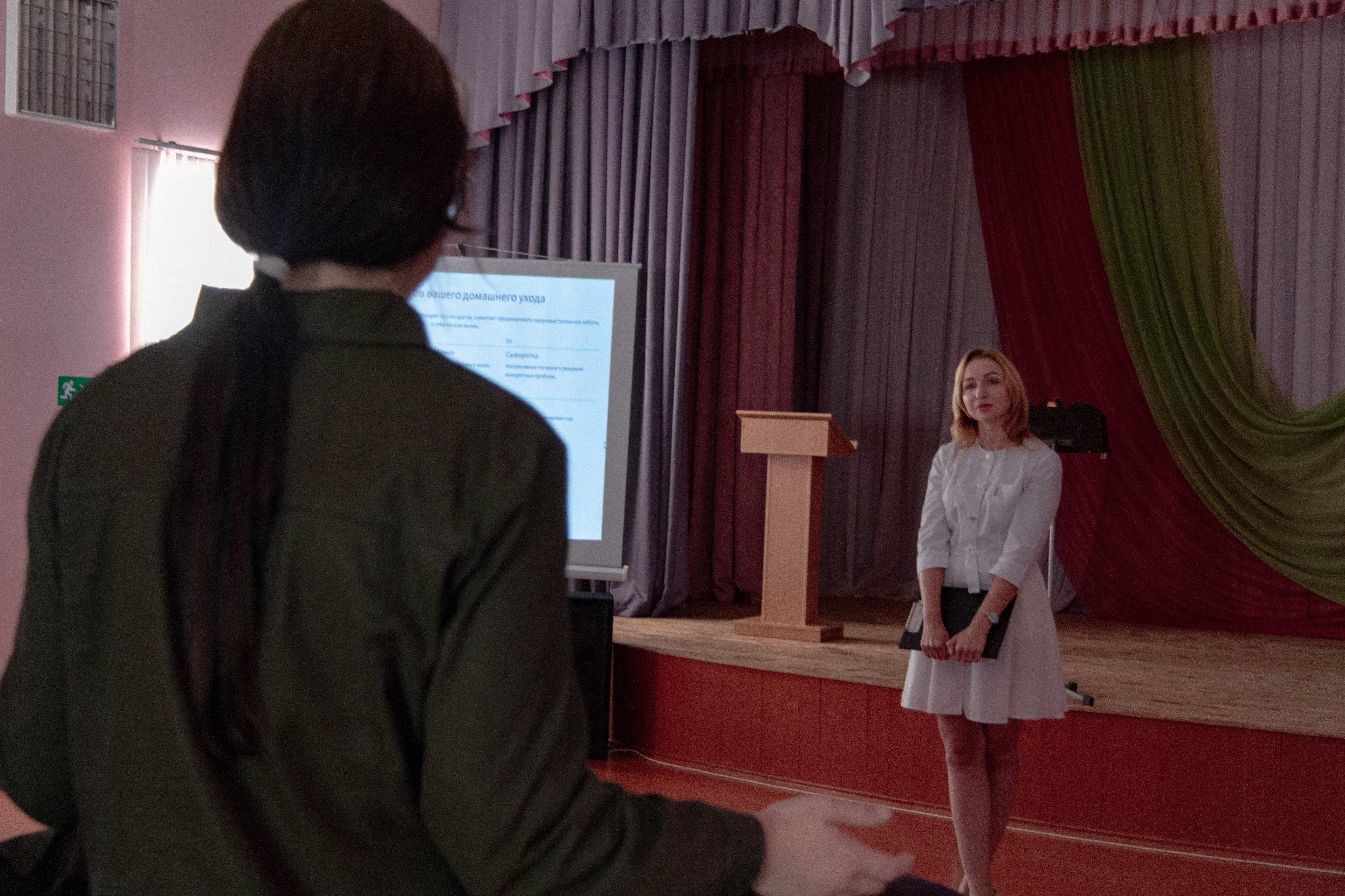 День начался с познавательной лекции о тонкостях ухода за подростковой кожей. Для многих девушек эта информация стала настоящим открытием. Вместо сухой теории они получили практические советы: как бороться с акне, почему так важно солнцезащитное средство и как правильно подбирать базовый уход. Волонтеры доступным языком объяснили сложные процессы, происходящие в коже в переходном возрасте, ответили на множество вопросов, разрушив несколько популярных мифов о косметике.