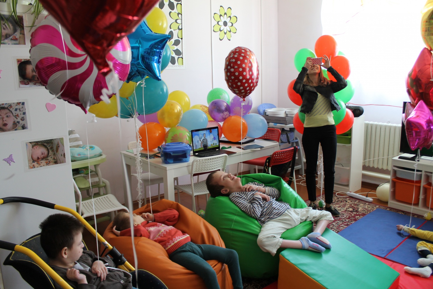 В начале мая у нас был день воздушных шариков. Мы украсили шарами игровую комнату для ребят, все вместе играли, устраивали конкурсы, слушали песни про шарики и танцевали, лопали шарики на планшете, дарили радость ребятам из других групп, отпускали в небо шары, загадав желание. Это был настоящий праздник красок, звуков, эмоций.