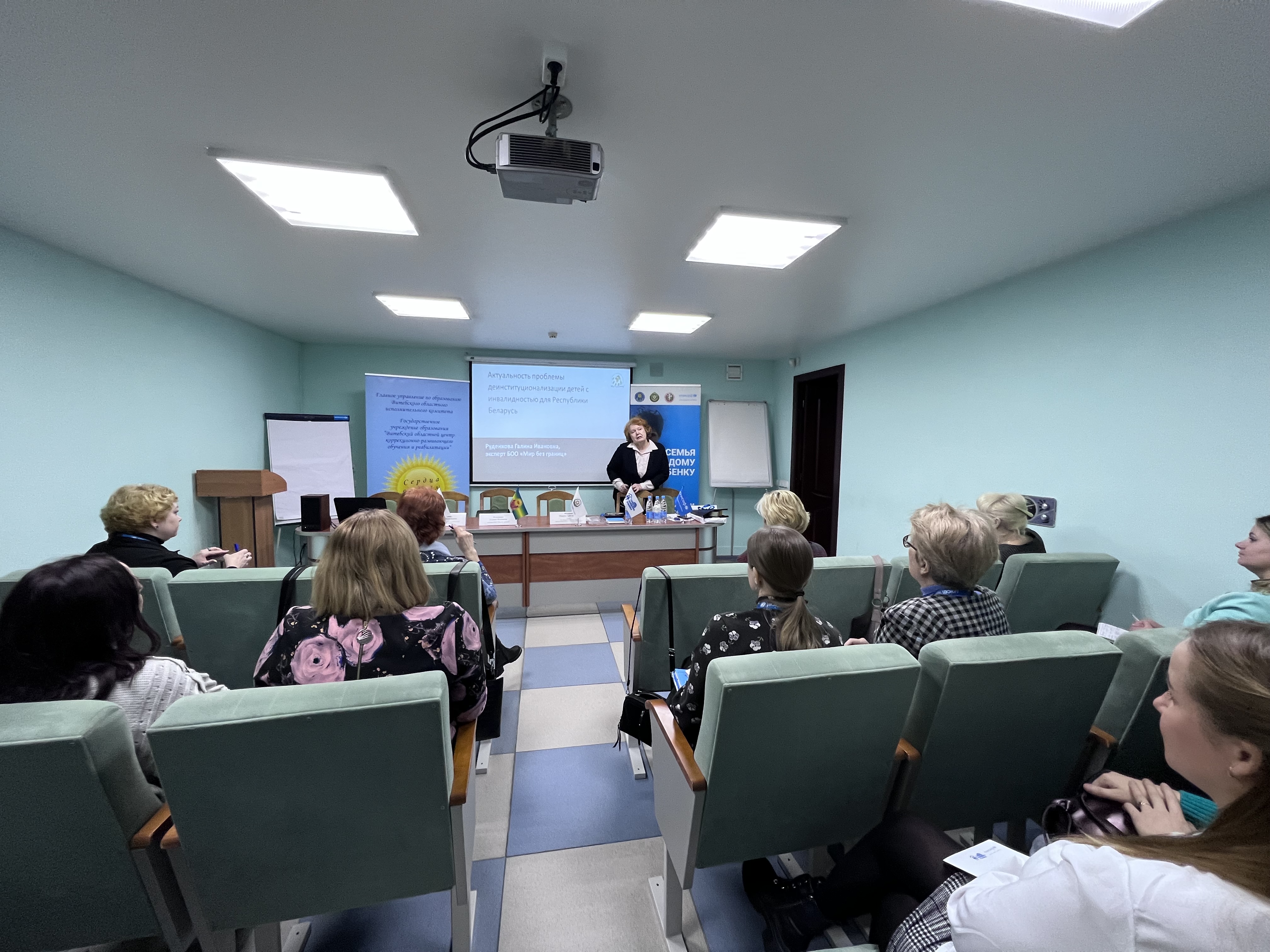 Галина Ивановна Руденкова, эксперт проекта, и специалист Татьяна Короткевич провели семинар-тренинг, который включал в себя теоретические и законодательные основы для деятельности по направлению реализации права детей на семью, практическое ознакомление с инструментами оценки ресурсов семьи и ребенка.