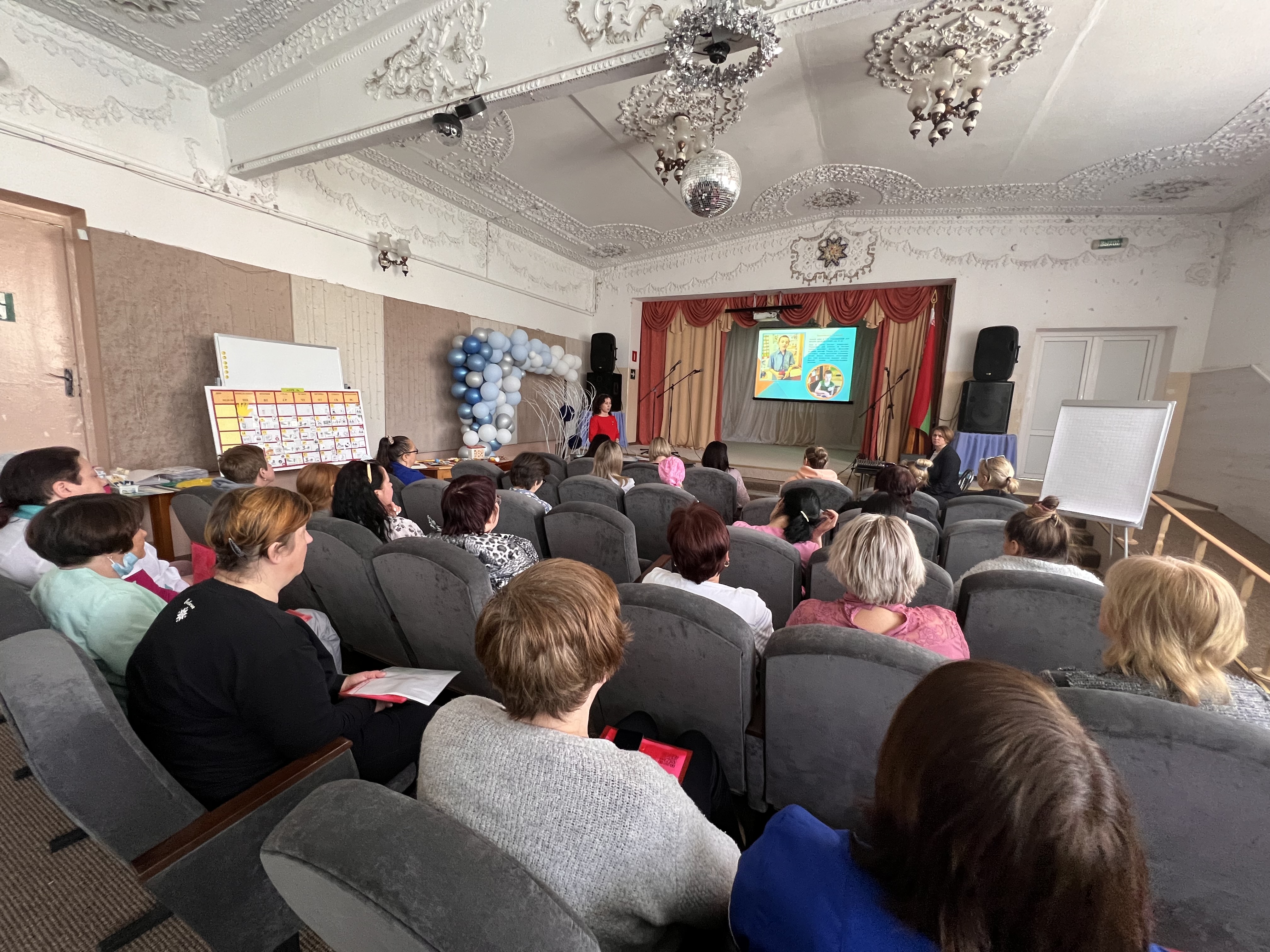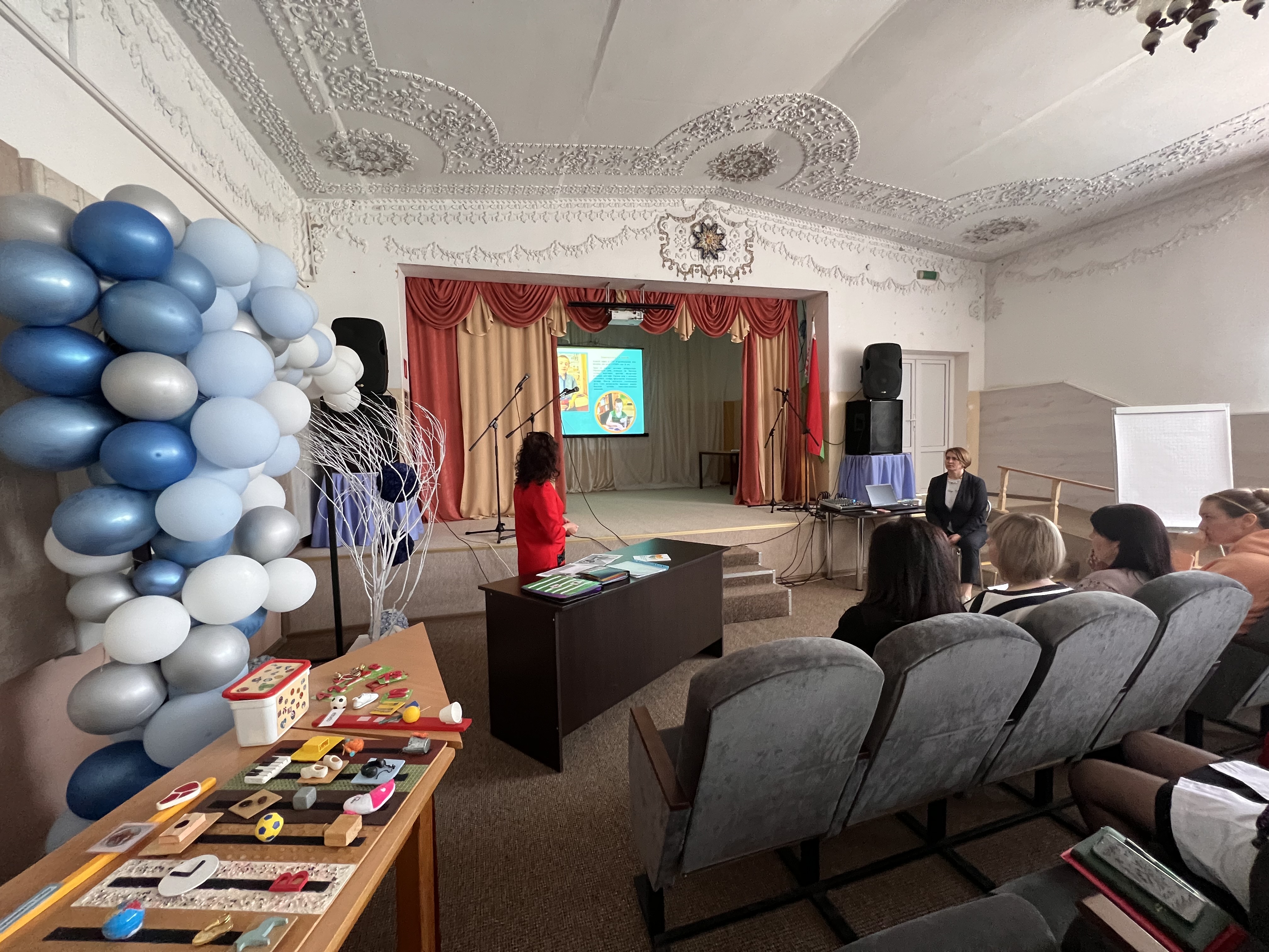 Поделились опытом работы чтения лекции с применением компьютерной техники и проектора. Особый акцент уделён речевому тренажёру Гоу Ток 9 (вспомогательному техническому средству коммуникации с речевым выводом). Были продемонстрированы карточки-заставки с тематическими изображениями, которые использую в работе с невербальными детьми.