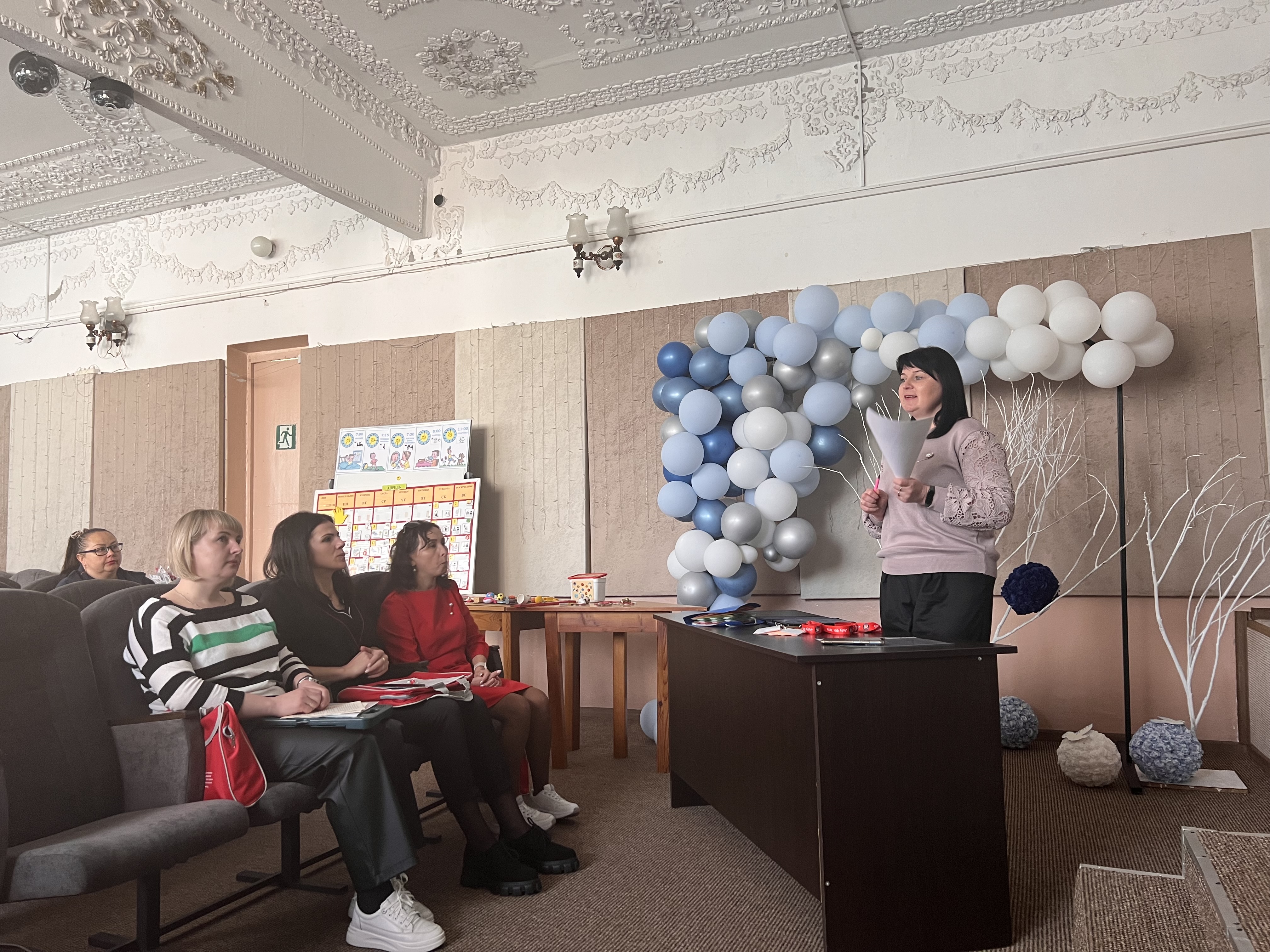 В ходе выступления участники задавали интересующие вопросы, касающиеся диагностики коммуникативных навыков, создание коммуникативного паспорта и альбома, программы для планшетов, разговорные кнопки и т.д. Так же слушателей заинтересовало приложение «Размова», которое находится в разработке.