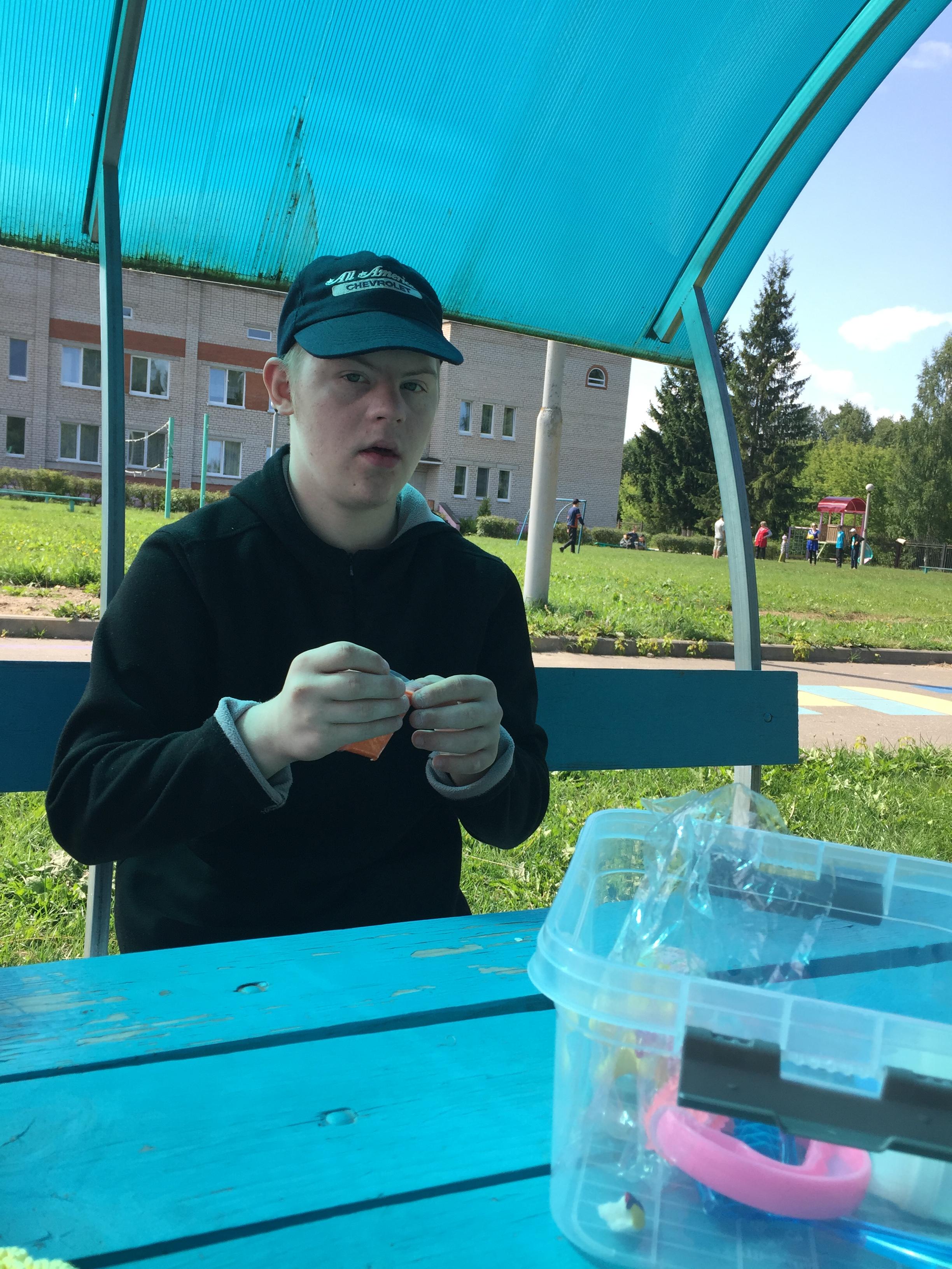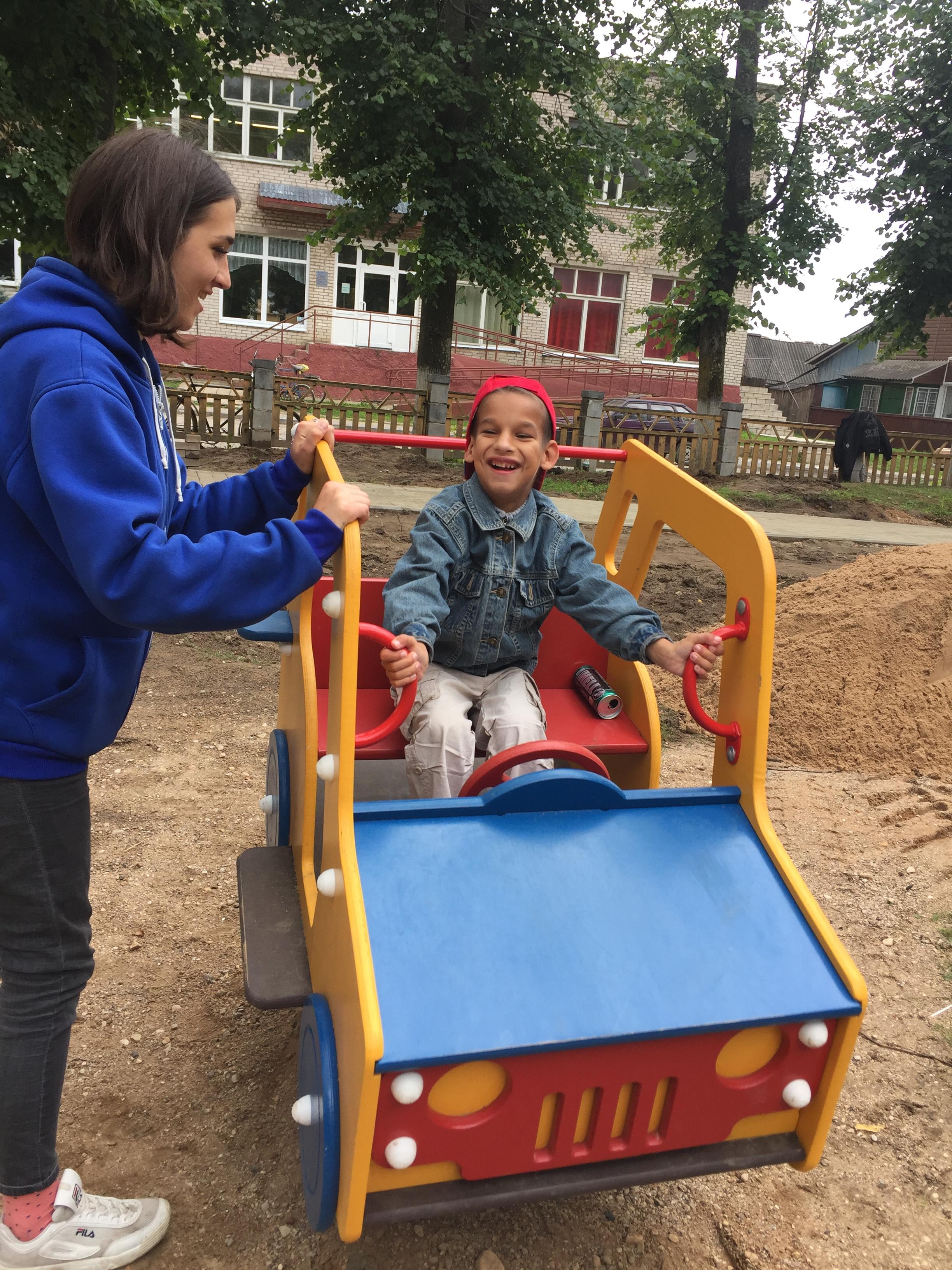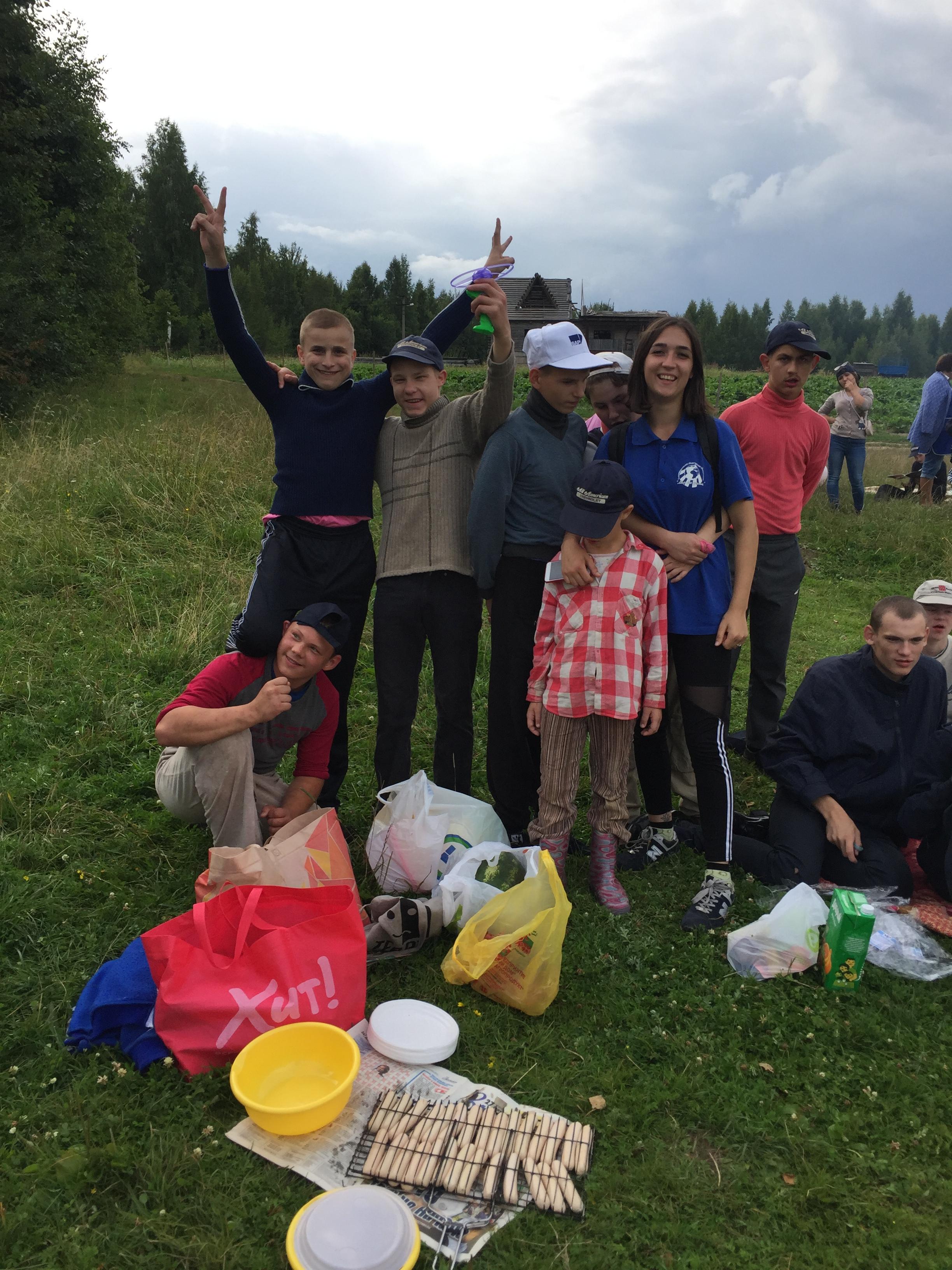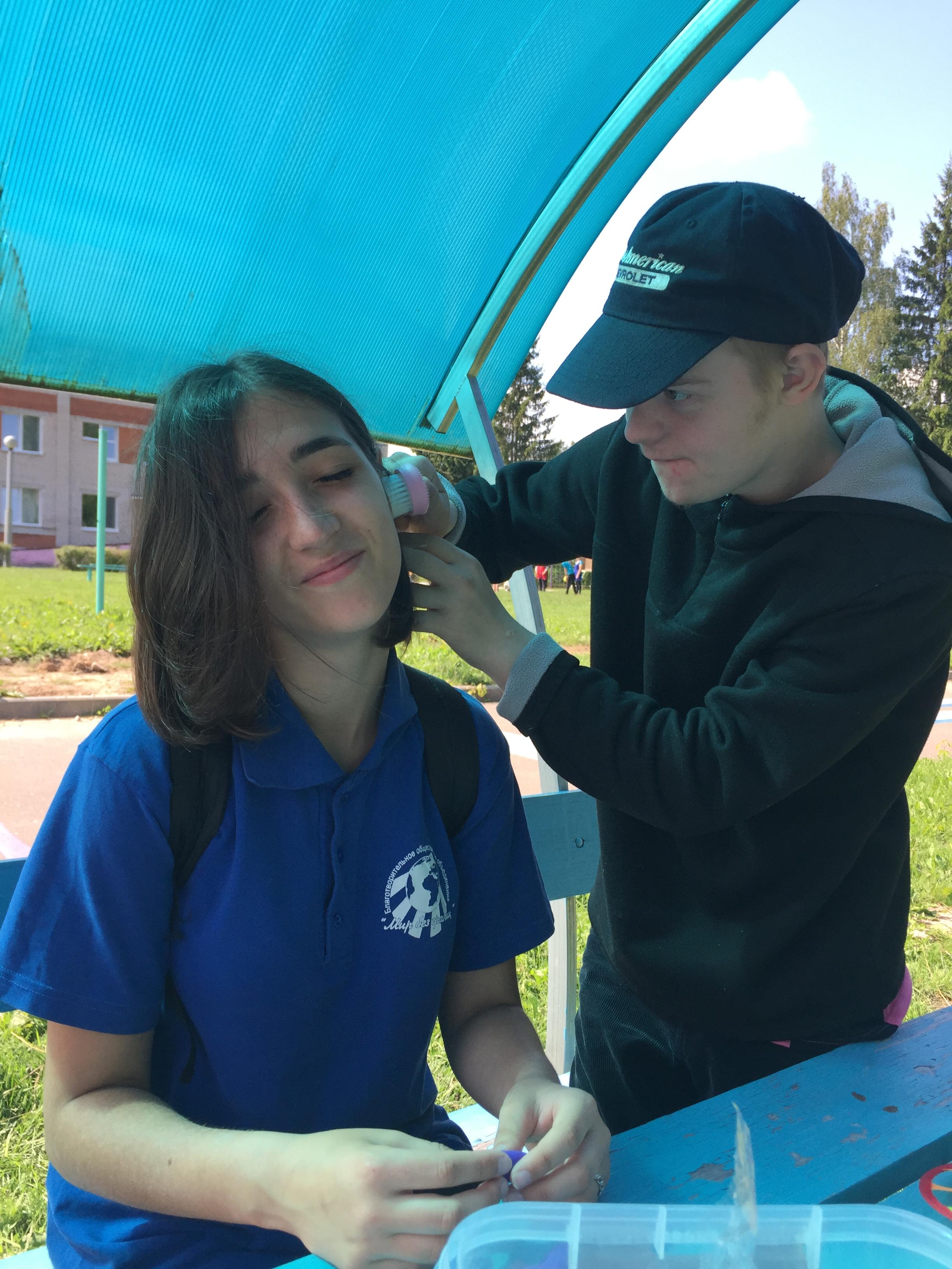 «У каждого каникулы начинаются по-разному. Например, мои каникулы начались с замечательной поездки в Богушевский дом-интернат для детей с особенностями развития. Туда я ехала с огромной радостью, потому что безумно скучала по ребятам: по их крепким объятиям, горящим глазам, и сердцам, которые полны любви к тебе. Для этих деток я и еще другие волонтёры проводили лагерь, который длился 4 дня, с 16 по 19 июля. Конечно же время пролетело совсем быстро, но, я надеюсь, что и за эти 4 дня мы успели подарить детям радость и незабываемые эмоции на долгое время. Практически все дни на улице была хорошая погода, поэтому мы старались как можно больше времени проводить на свежем воздухе с ребятами из разных групп. С кем-то выходили на прогулку вокруг территории, и дети были очень рады этому, или устраивались в какой-нибудь беседке и играли в настольные игры, лепили из пластилина, слушали музыку, пускали мыльные пузыри, которые дети с огромным удовольствием лопали. Некоторым ребятам очень понравилось делать нам прически, расчесывать нас, делать массаж. Мы были только рады этому. А вот с самыми сильными и выносливыми малышами и ребятами, мы отправились в небольшое путешествие от интерната до центра Богушевска. Мы преодолели тропинки леса и кучу комаров и наконец-то пришли своей большой и дружной компанией к новой детской площадке в Богушевске. Для нас это кажется совсем обычным явлением, но для этих ребят – это значит узнать что-то новое, получить большое количество незабываемых впечатлений, ведь они очень редко выходят за пределы дома-интерната. Там, ребята, под нашим присмотром прокатились со всех горок, покатались на всех качелях и каруселях. Мы решили продлить их радость и накормили вкусным мороженым. Ели все по-разному, кто-то со всем даже и не испачкался, а кто-то вымазался весь. А мы конечно же сфоткали эти смешные моменты на память. Дети по дороге обратно шли самые счастливые, хоть и не хотели уходить с детской площадки. Про самых взрослых ребят конечно же мы не забыли, и по традиции устроили пикник возле озера. Нажарили сосисок, попили кваса, потанцевали, поиграли, попели. Мы зарядили ребят по полной, радости в их глазах не было придела. Они так крепко нас обнимали и говорили спасибо, что совсем не хотелось уходить от них. Ради их крепких объятий можно отдать все на свете. Ведь они так искренне любят нас, когда мы проводим с ними время, можем выслушать их, или дать какой-нибудь совет, научить чему-то новому.