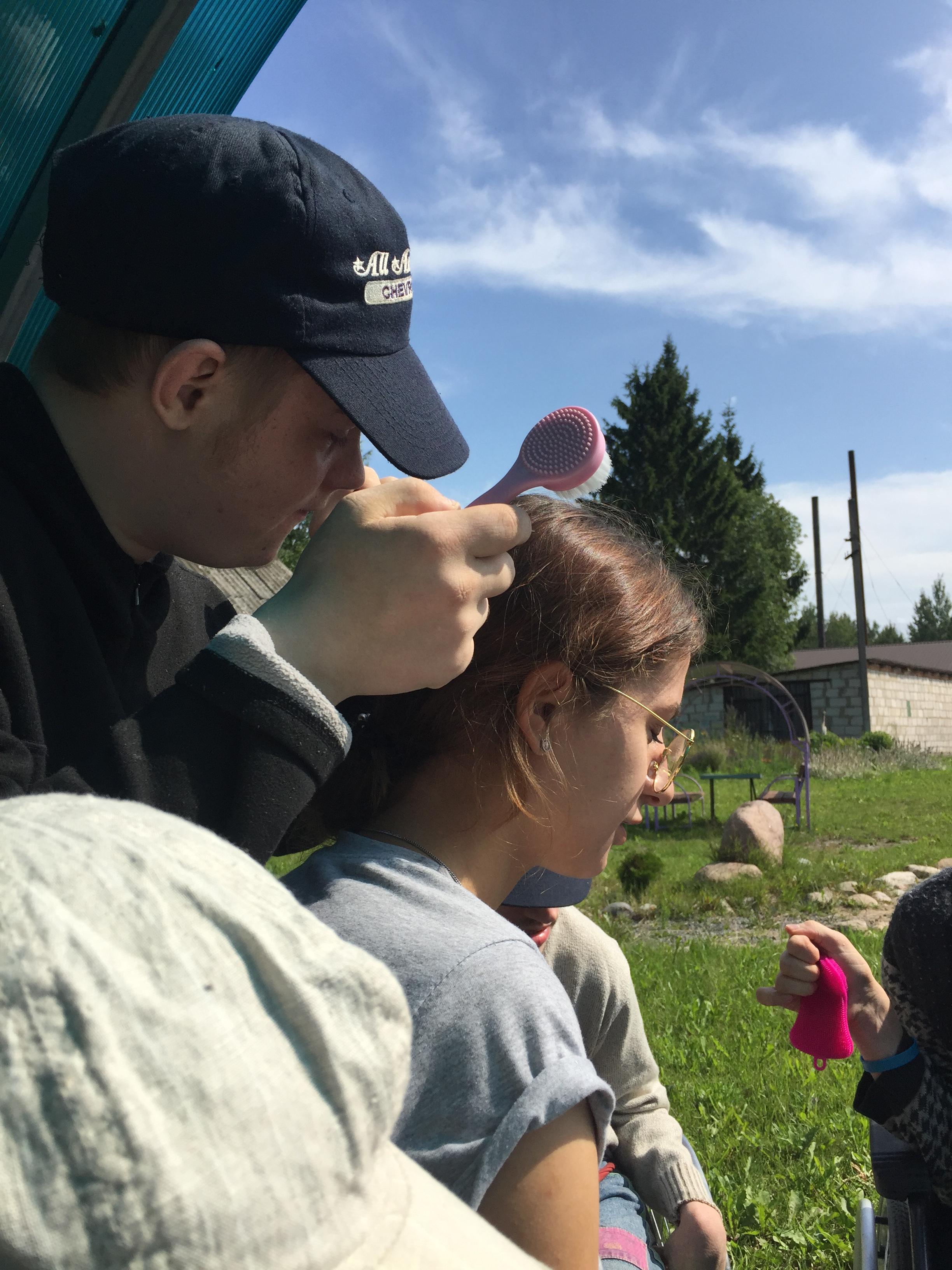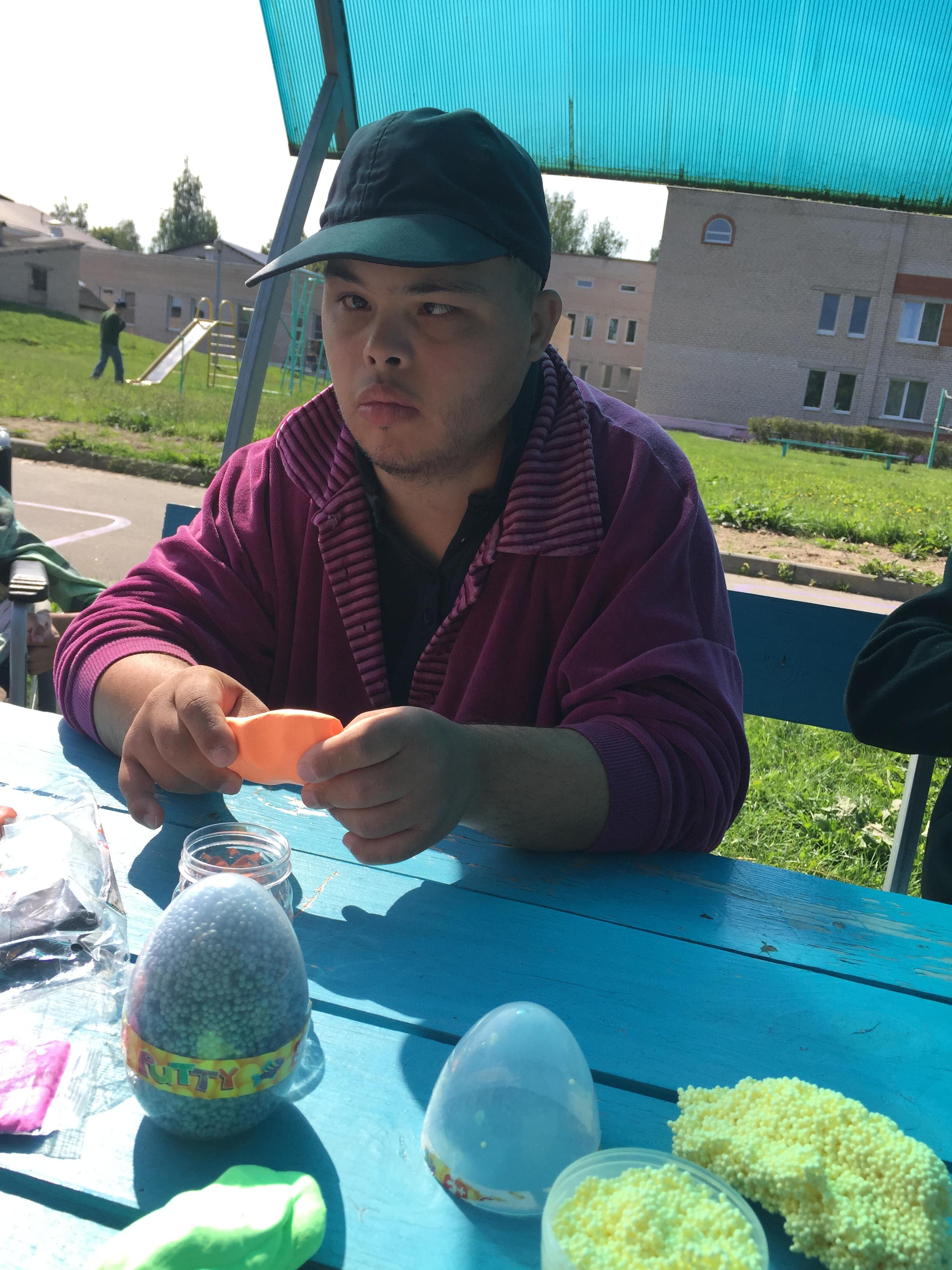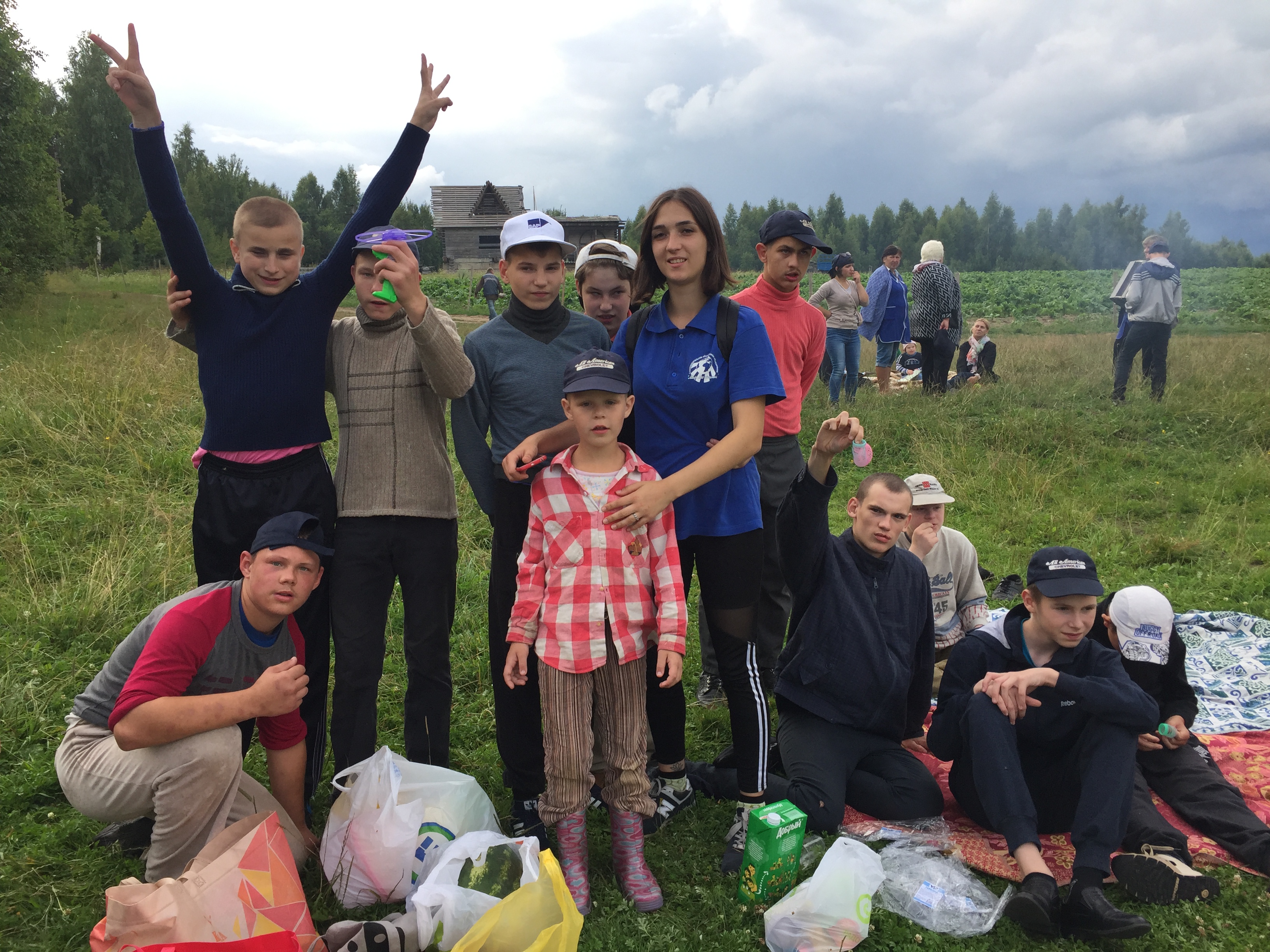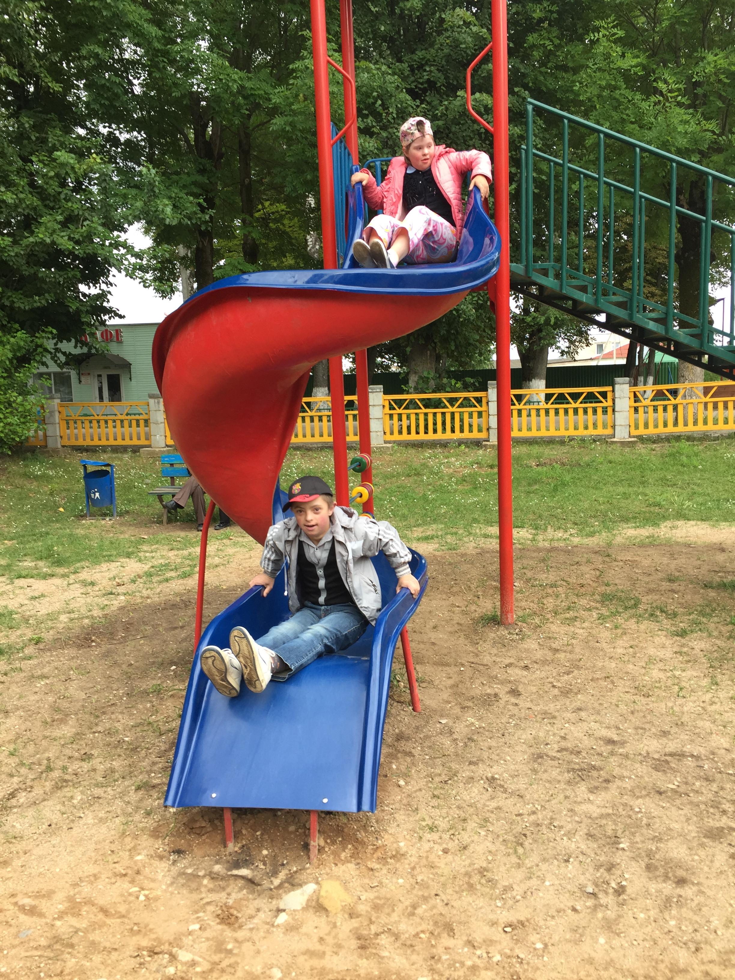 «У каждого каникулы начинаются по-разному. Например, мои каникулы начались с замечательной поездки в Богушевский дом-интернат для детей с особенностями развития. Туда я ехала с огромной радостью, потому что безумно скучала по ребятам: по их крепким объятиям, горящим глазам, и сердцам, которые полны любви к тебе. Для этих деток я и еще другие волонтёры проводили лагерь, который длился 4 дня, с 16 по 19 июля. Конечно же время пролетело совсем быстро, но, я надеюсь, что и за эти 4 дня мы успели подарить детям радость и незабываемые эмоции на долгое время. Практически все дни на улице была хорошая погода, поэтому мы старались как можно больше времени проводить на свежем воздухе с ребятами из разных групп. С кем-то выходили на прогулку вокруг территории, и дети были очень рады этому, или устраивались в какой-нибудь беседке и играли в настольные игры, лепили из пластилина, слушали музыку, пускали мыльные пузыри, которые дети с огромным удовольствием лопали. Некоторым ребятам очень понравилось делать нам прически, расчесывать нас, делать массаж. Мы были только рады этому. А вот с самыми сильными и выносливыми малышами и ребятами, мы отправились в небольшое путешествие от интерната до центра Богушевска. Мы преодолели тропинки леса и кучу комаров и наконец-то пришли своей большой и дружной компанией к новой детской площадке в Богушевске. Для нас это кажется совсем обычным явлением, но для этих ребят – это значит узнать что-то новое, получить большое количество незабываемых впечатлений, ведь они очень редко выходят за пределы дома-интерната. Там, ребята, под нашим присмотром прокатились со всех горок, покатались на всех качелях и каруселях. Мы решили продлить их радость и накормили вкусным мороженым. Ели все по-разному, кто-то со всем даже и не испачкался, а кто-то вымазался весь. А мы конечно же сфоткали эти смешные моменты на память. Дети по дороге обратно шли самые счастливые, хоть и не хотели уходить с детской площадки. Про самых взрослых ребят конечно же мы не забыли, и по традиции устроили пикник возле озера. Нажарили сосисок, попили кваса, потанцевали, поиграли, попели. Мы зарядили ребят по полной, радости в их глазах не было придела. Они так крепко нас обнимали и говорили спасибо, что совсем не хотелось уходить от них. Ради их крепких объятий можно отдать все на свете. Ведь они так искренне любят нас, когда мы проводим с ними время, можем выслушать их, или дать какой-нибудь совет, научить чему-то новому.