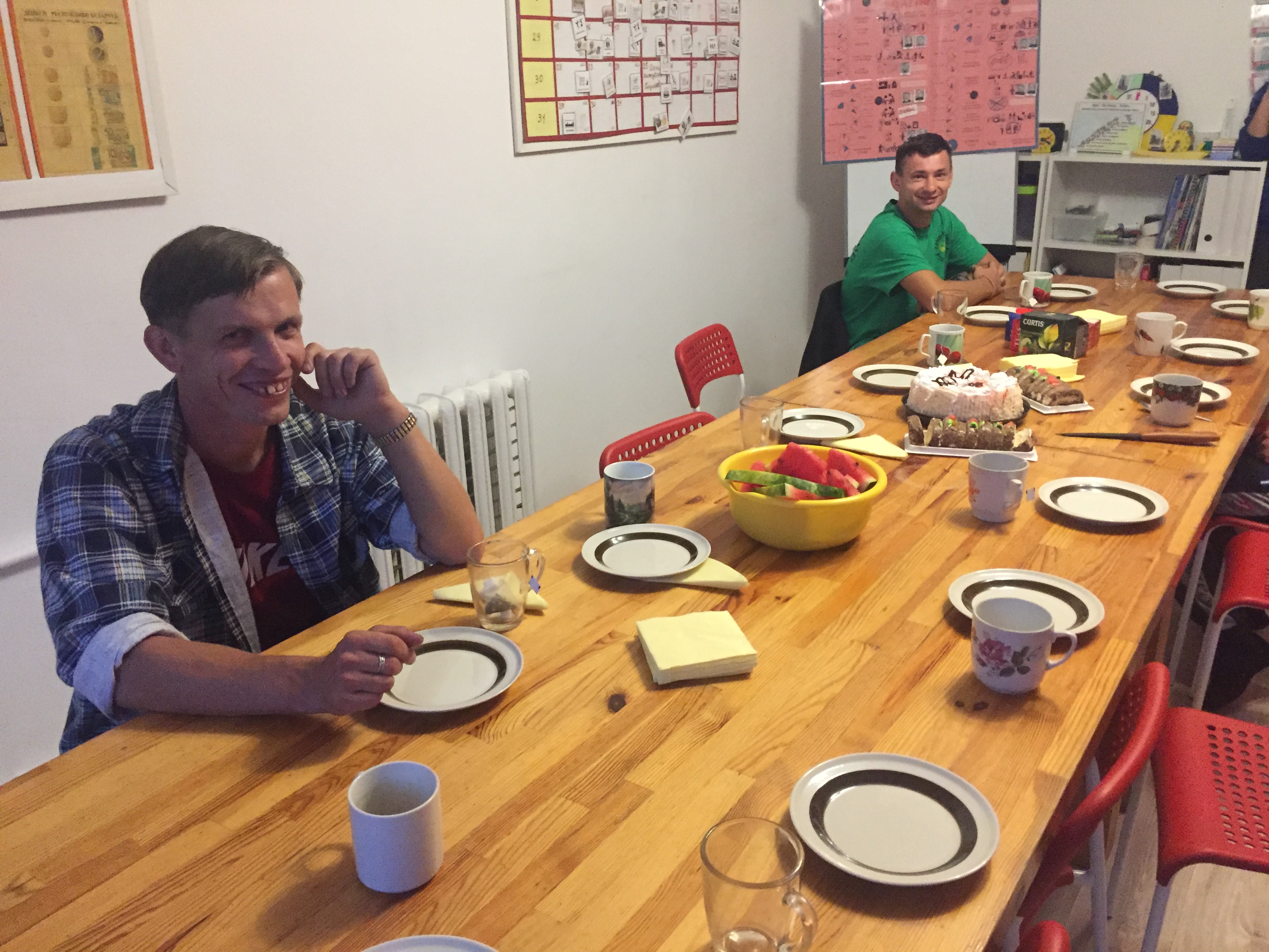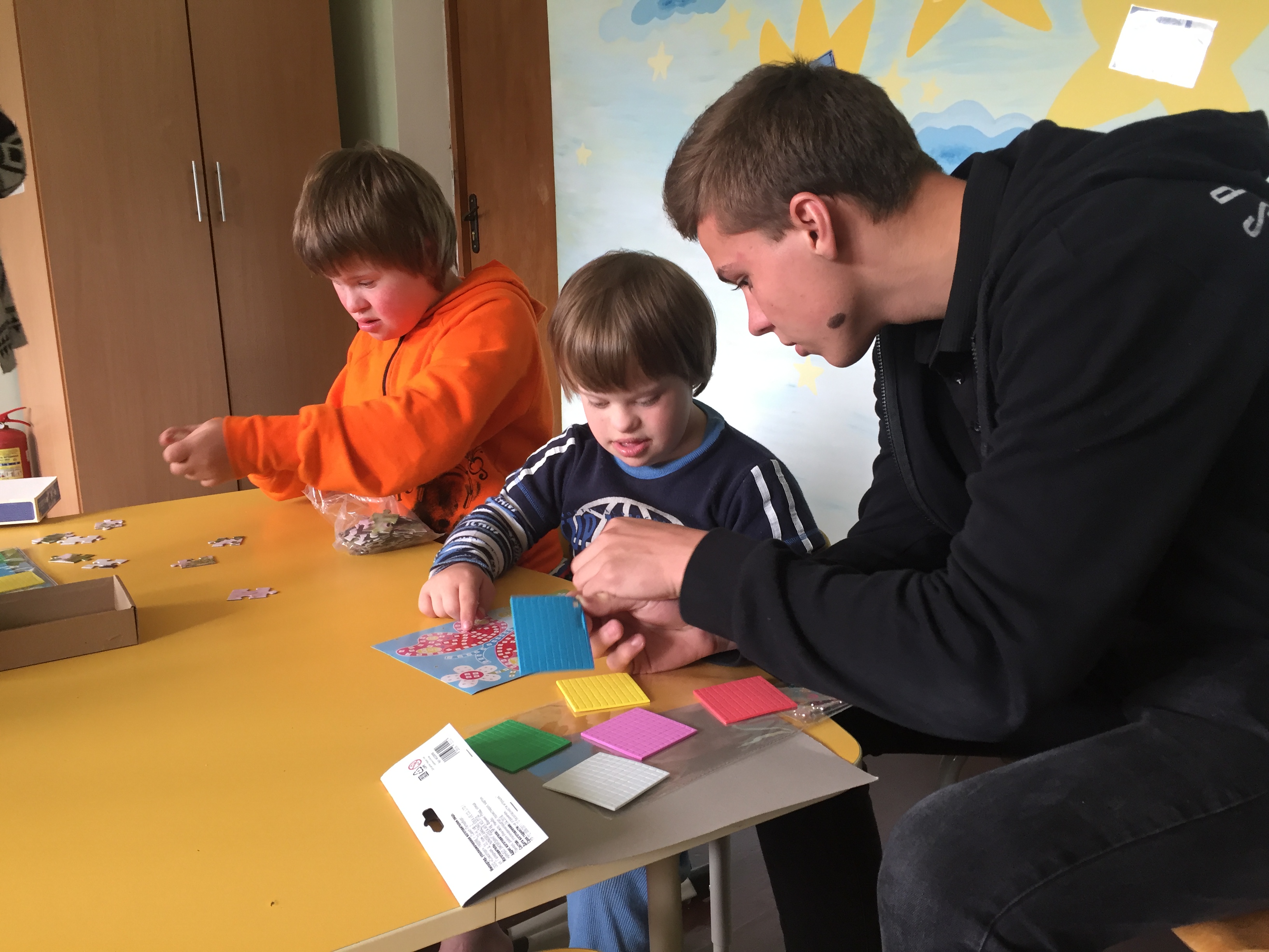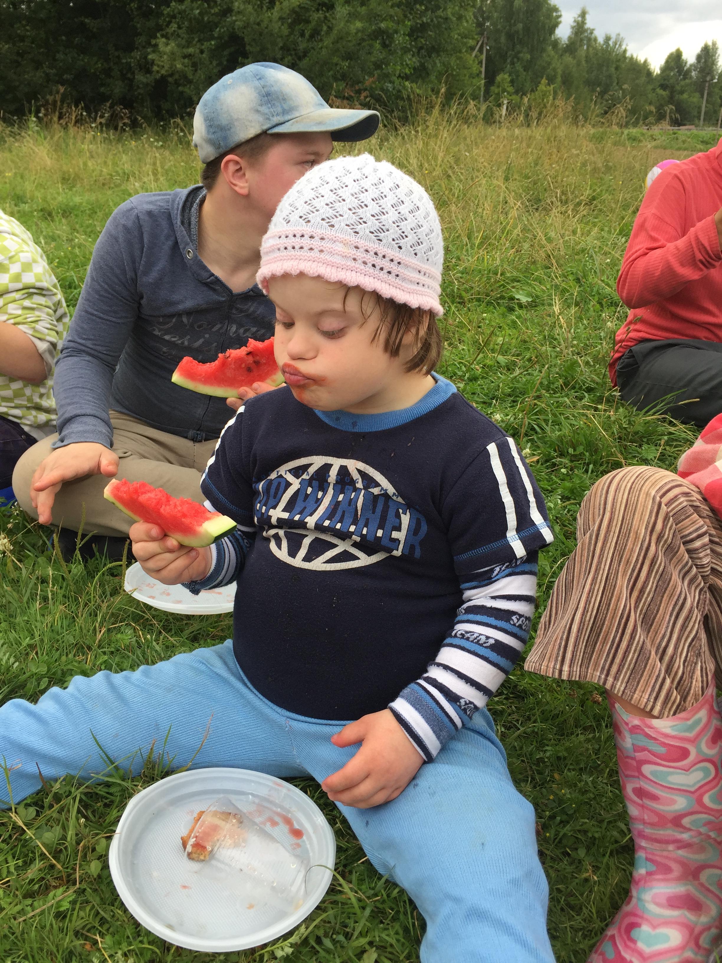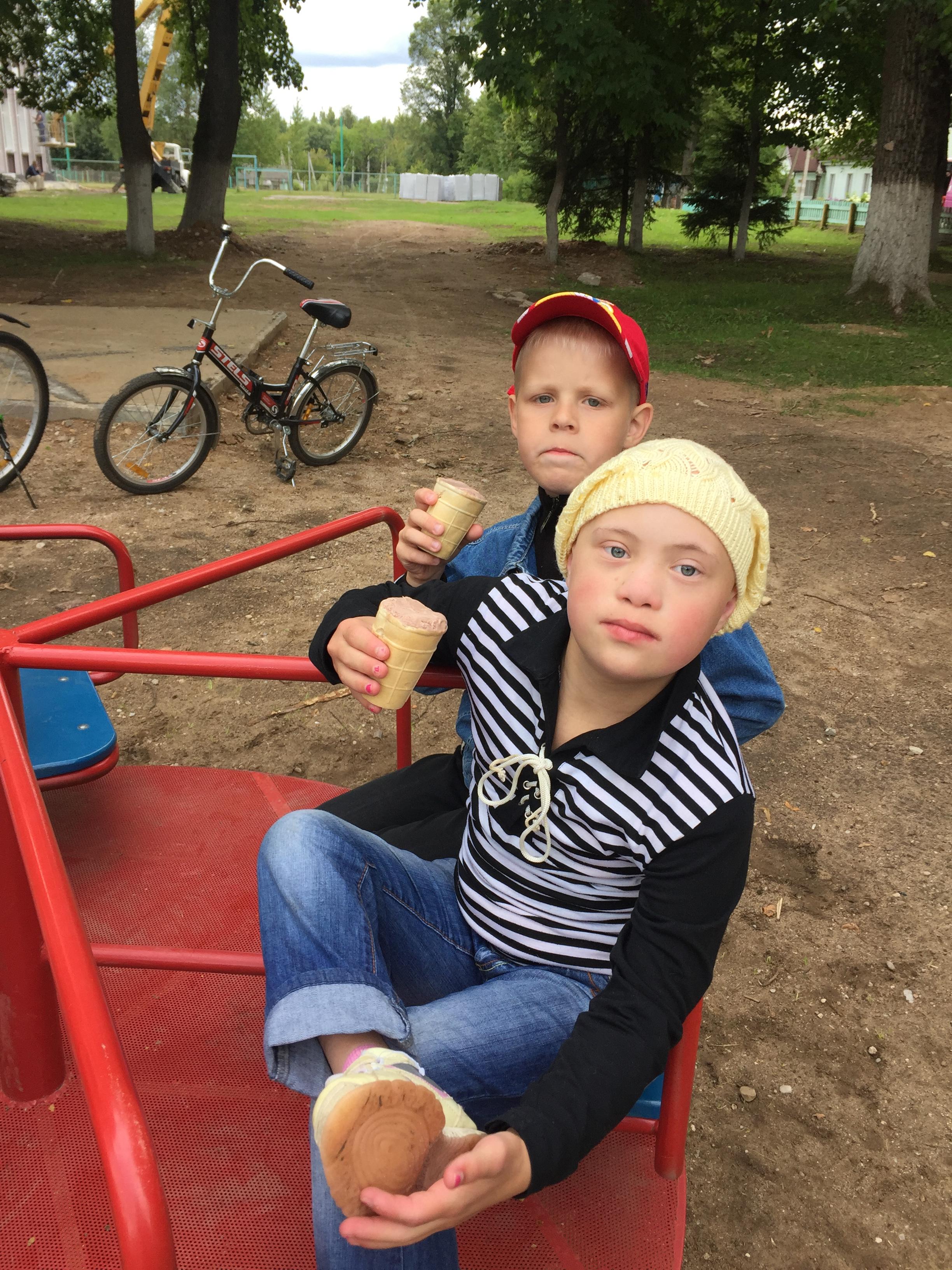 «У каждого каникулы начинаются по-разному. Например, мои каникулы начались с замечательной поездки в Богушевский дом-интернат для детей с особенностями развития. Туда я ехала с огромной радостью, потому что безумно скучала по ребятам: по их крепким объятиям, горящим глазам, и сердцам, которые полны любви к тебе. Для этих деток я и еще другие волонтёры проводили лагерь, который длился 4 дня, с 16 по 19 июля. Конечно же время пролетело совсем быстро, но, я надеюсь, что и за эти 4 дня мы успели подарить детям радость и незабываемые эмоции на долгое время. Практически все дни на улице была хорошая погода, поэтому мы старались как можно больше времени проводить на свежем воздухе с ребятами из разных групп. С кем-то выходили на прогулку вокруг территории, и дети были очень рады этому, или устраивались в какой-нибудь беседке и играли в настольные игры, лепили из пластилина, слушали музыку, пускали мыльные пузыри, которые дети с огромным удовольствием лопали. Некоторым ребятам очень понравилось делать нам прически, расчесывать нас, делать массаж. Мы были только рады этому. А вот с самыми сильными и выносливыми малышами и ребятами, мы отправились в небольшое путешествие от интерната до центра Богушевска. Мы преодолели тропинки леса и кучу комаров и наконец-то пришли своей большой и дружной компанией к новой детской площадке в Богушевске. Для нас это кажется совсем обычным явлением, но для этих ребят – это значит узнать что-то новое, получить большое количество незабываемых впечатлений, ведь они очень редко выходят за пределы дома-интерната. Там, ребята, под нашим присмотром прокатились со всех горок, покатались на всех качелях и каруселях. Мы решили продлить их радость и накормили вкусным мороженым. Ели все по-разному, кто-то со всем даже и не испачкался, а кто-то вымазался весь. А мы конечно же сфоткали эти смешные моменты на память. Дети по дороге обратно шли самые счастливые, хоть и не хотели уходить с детской площадки. Про самых взрослых ребят конечно же мы не забыли, и по традиции устроили пикник возле озера. Нажарили сосисок, попили кваса, потанцевали, поиграли, попели. Мы зарядили ребят по полной, радости в их глазах не было придела. Они так крепко нас обнимали и говорили спасибо, что совсем не хотелось уходить от них. Ради их крепких объятий можно отдать все на свете. Ведь они так искренне любят нас, когда мы проводим с ними время, можем выслушать их, или дать какой-нибудь совет, научить чему-то новому.
