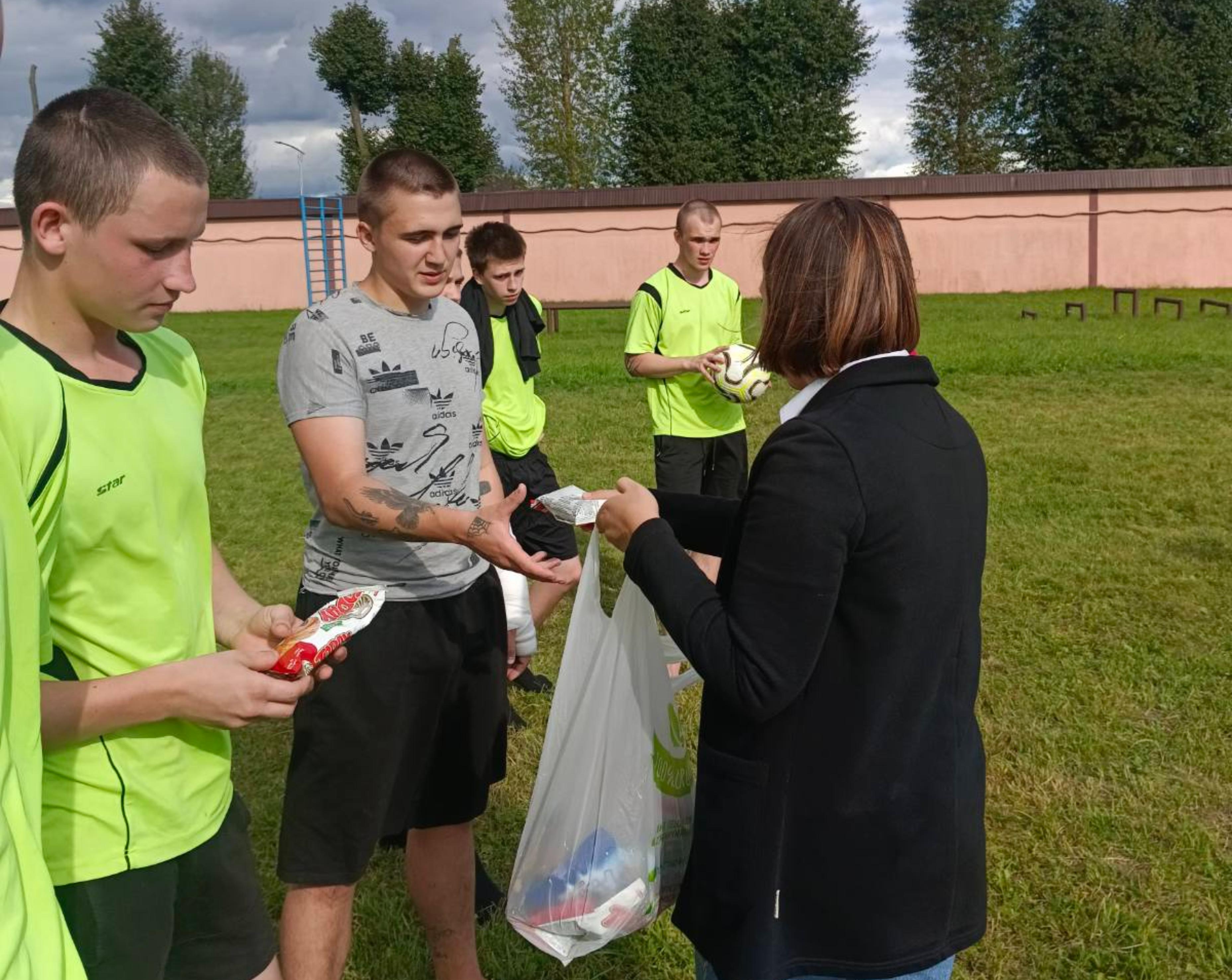 Подростковый возраст – время становления человека, сопряженное с переосмыслением себя и попытками взять на себя больше взрослых функций, иногда отвергая авторитет и советы взрослых. Дети растут и становятся взрослыми. Парни мечтают стать сильными, самостоятельными, самодостаточными и благополучными. И хорошо, когда о позитивном опыте расскажут такие же парни, но чуть постарше, уже имеющие определенные достижения. С нами на очередную акцию приехали ребята из футбольного клуба «Крумкачи». Футбол, игры, общение, советы и мастер-класс – привнесли свой вайб и пришлись по нраву. И если взрослым приходится искать контакт с подростком, то в нашем случае все было похоже на встречу единомышленников, старых товарищей. И конечно же спортивные подарки от ДЮСШ по футболу «Груганы», сладости от «Альтерини», общение от команды «МБГ» позволили подарить много добрых улыбок и прекрасных эмоций.