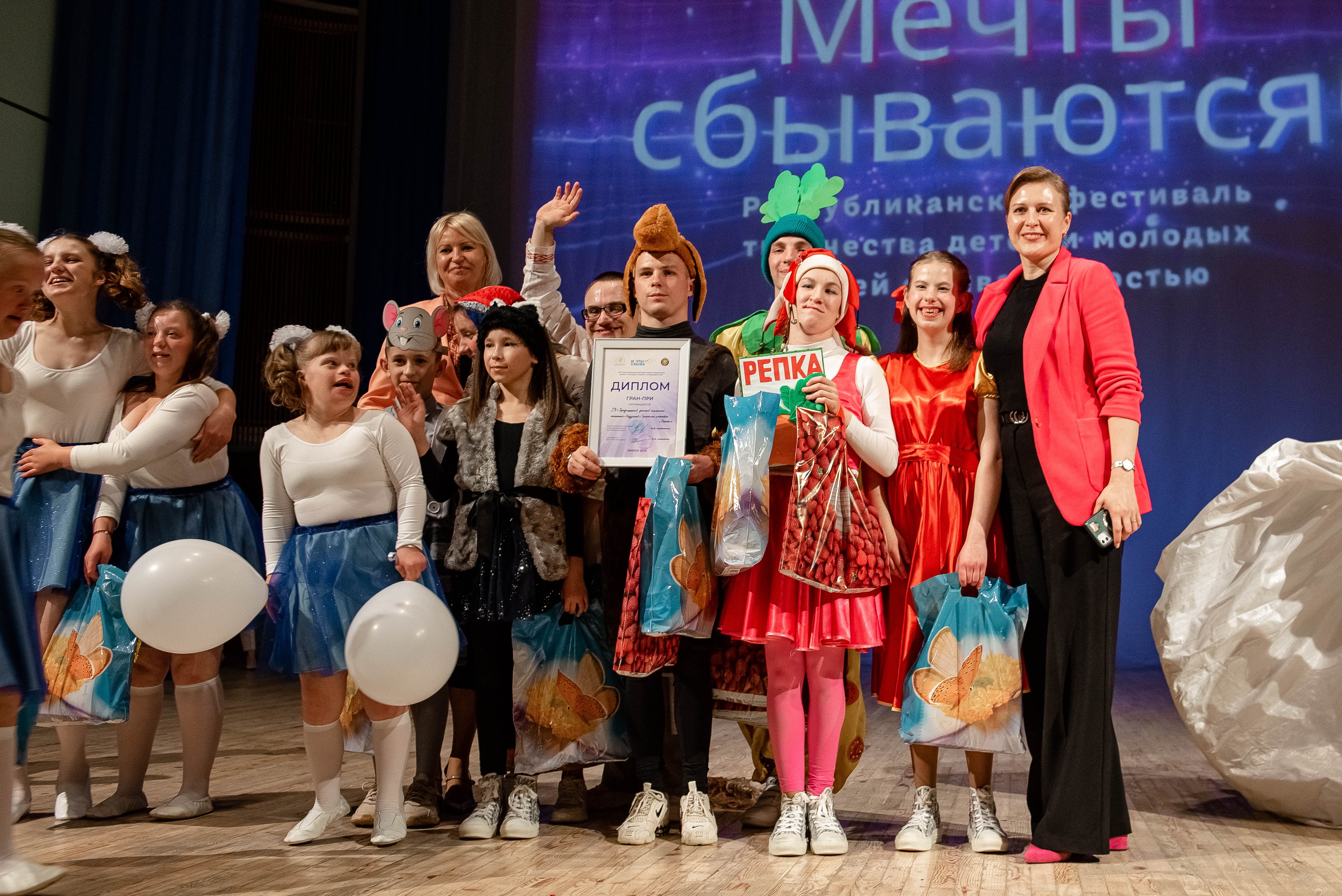 2 место 9 человек - ГУ "Червенский детский социальный пансионат "Игуменский". Название номера – Дети войны.Огромное спасибо ведущим Фестиваля, актеру и телеведущему Андрею Перепечко, певице Марине Барановской (Баронессе).