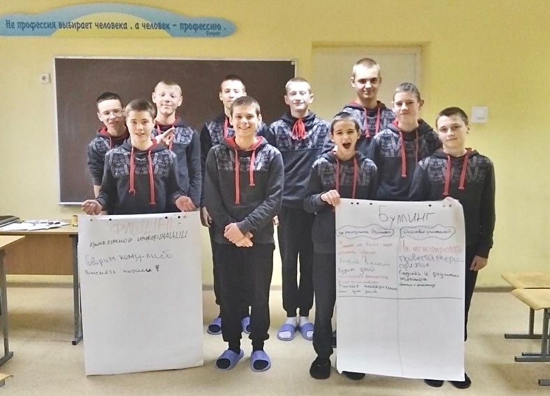 В Могилевской государственной специальной школе закрытого типа прошла серия занятий о правах детей и по профилактике насилия, буллинга среди подростков. Спикерами выступили сами воспитанники (трое ребят, ставших тренерами в области информирования о правах детей на подростковом Форуме). Парни применяли интерактивные методы на семинарах, очень ответственно отнеслись к проведению и подаче материала! Три занятия прошли потрясающе увлекательно и с великолепными результатами для всех: подростки с каждым разом становились активнее в обсуждениях, открыто выражали свое мнение, делали важные выводы и составляли алгоритмы реагирования на различные обстоятельства, включая ситуации риска. Иногда приходило осознание каких-то неверных решений, действий в прошлом, но всегда есть шанс повлиять на улучшение своего будущего, выбирая правильные ориентиры и стремления. Главное - иметь осознанное желание идти дальше, совершенствоваться!