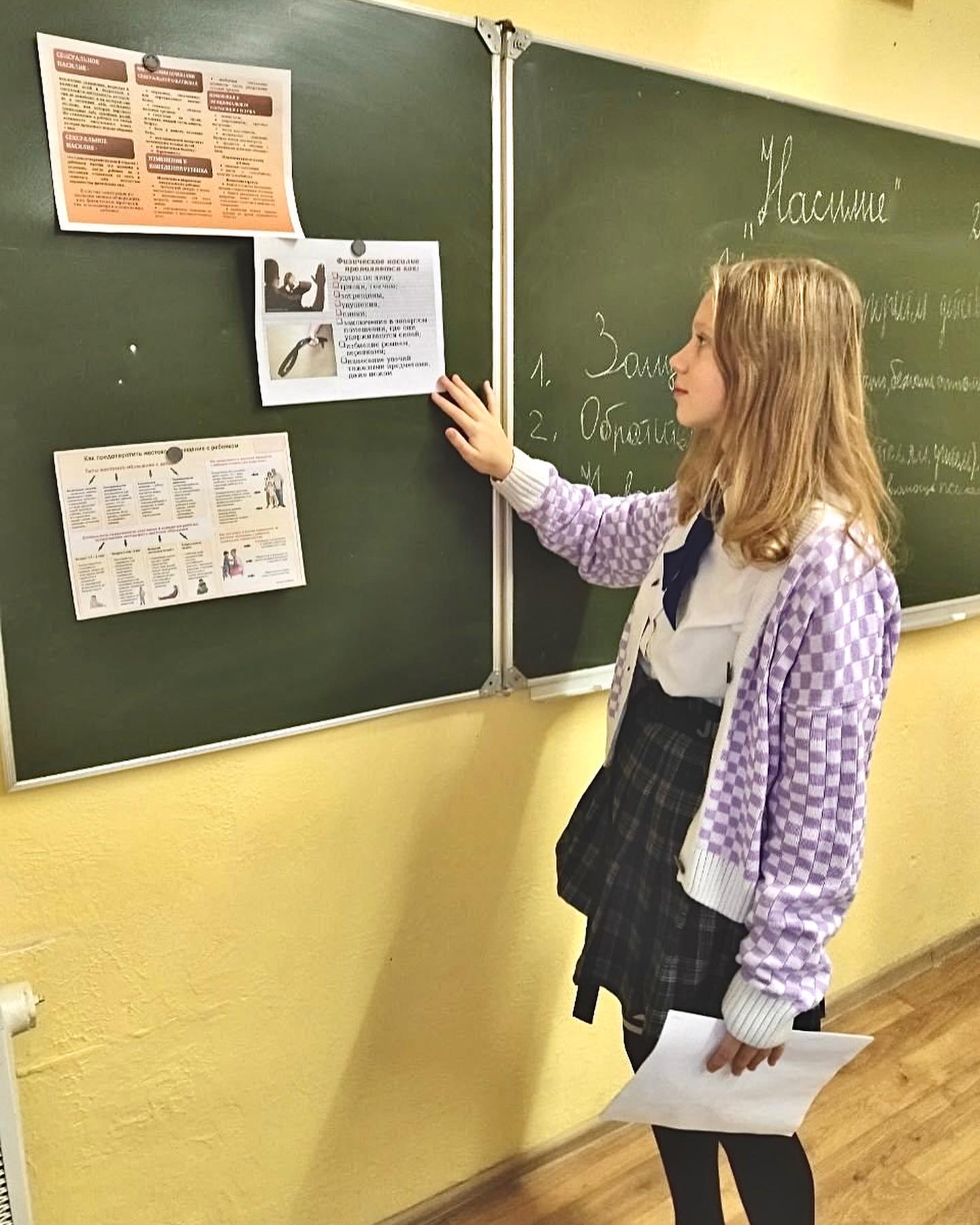 Благодаря Форуму подростков, который состоялся в сентябре 2022 г, знания с тех семинаров активно распространяются подростками! Наши замечательные инициативные тренеры по правам детей Коржаневская Полина (12 лет) и Хвалько Влада(12 лет) от Городищенского дома-интерната провели занятия не только в указанном учреждении, но и в своей школе (ГУО "Городищенская средняя школа имени М.А.Скипора Барановичского района") среди учеников 7 -х классов. Тему занятия они выбрали "Насилие", в конце которого вместе с учащимися записали небольшой видеоролик на тему "Буллинг".